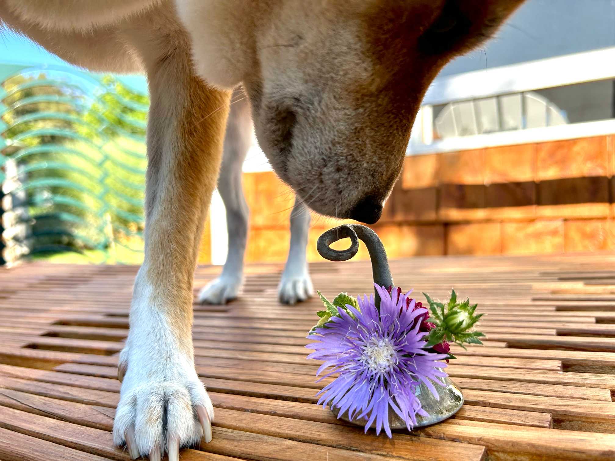 クン活でいつもお花をチェックするサスケ。犬と花の好きな人用、ゆるいみどりのまとめです。説明はありません。サスケのひとり言のみです