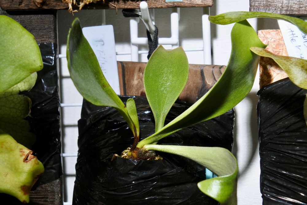 ビカクシダ・エリシーの一つが成長点がやたら増えたので選抜して分割。別の一つは落下させて首折れしたので、水苔を巻いて見守りです。