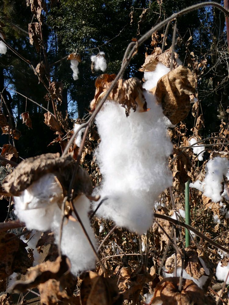 子房が発達して形成される朔果の内部の種子表面から白い綿毛が生じ、これを繊維として利用する。この繊維は綿(木綿)として利用されるそうです🤔