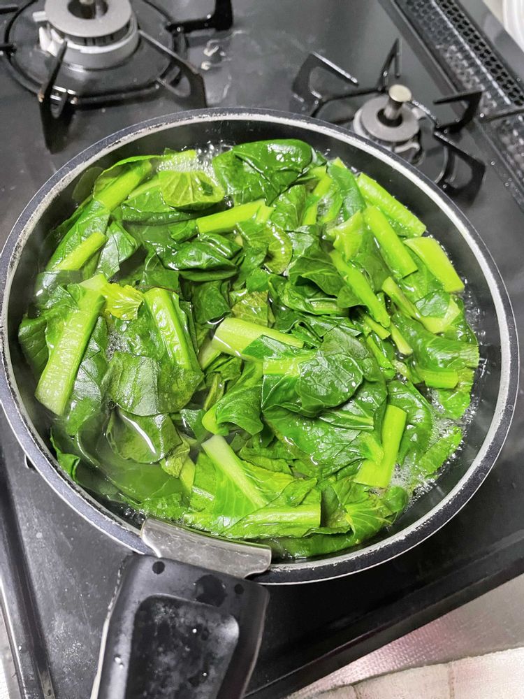 大量に収穫した小松菜をさっとボイルしてジューサーで👌