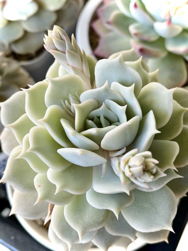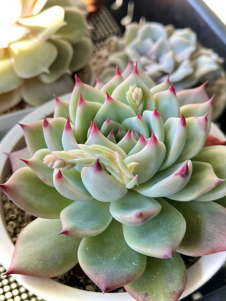 2025年4月にネットでたにたのさんの苗を購入した時におまけでついてきた名無しのエケベリアが面白く育っているので、成長記録を作りました。 この子の名前ご存知でしたら、ぜひ教えてください🙏