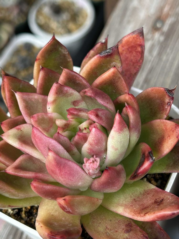 2025年4月にネットでたにたのさんの苗を購入した時におまけでついてきた名無しのエケベリアが面白く育っているので、成長記録を作りました。 この子の名前ご存知でしたら、ぜひ教えてください🙏