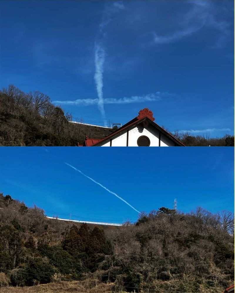 上、飛行機✈️雲☁️が交差したもので初めて見ました😊