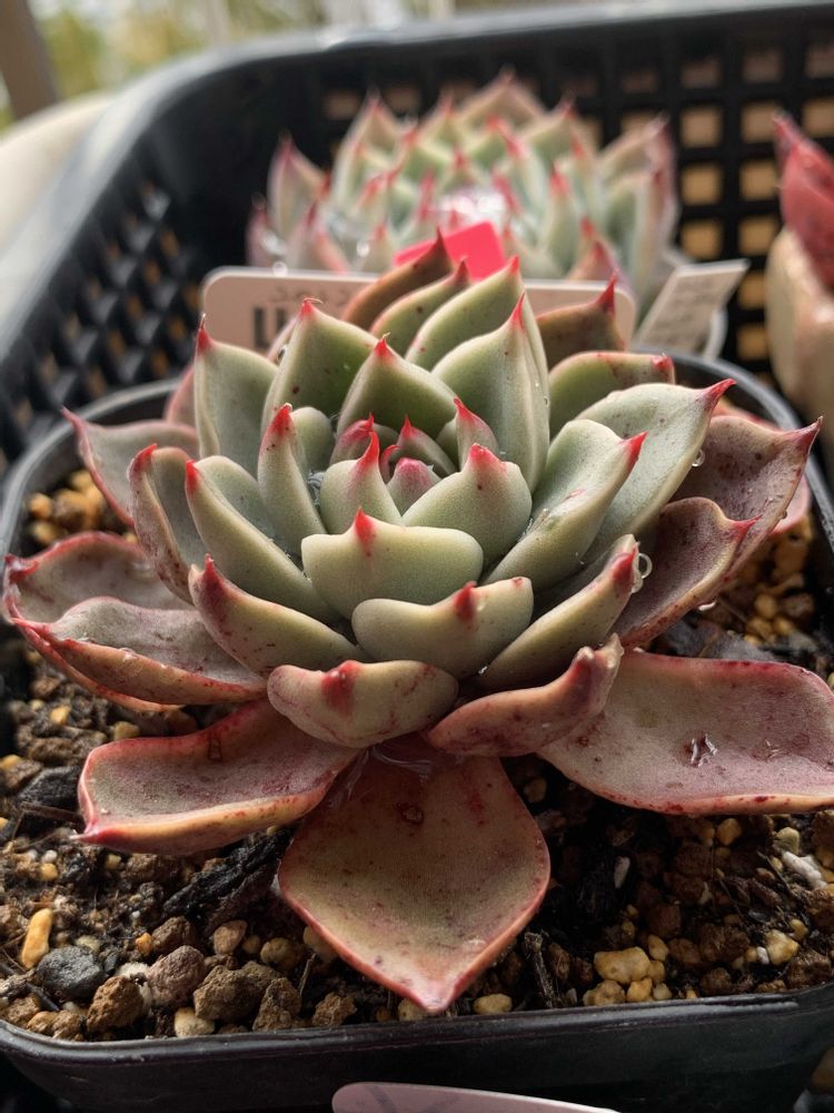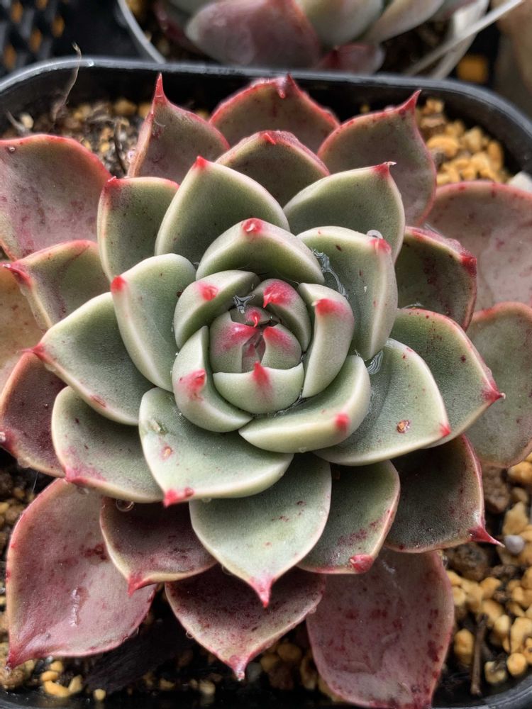 2025年4月にネットでたにたのさんの苗を購入した時におまけでついてきた名無しのエケベリアが面白く育っているので、成長記録を作りました。 この子の名前ご存知でしたら、ぜひ教えてください🙏