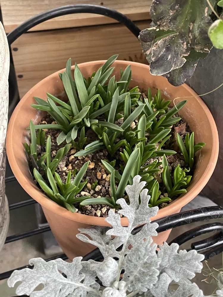 1️⃣実家から持ってきた何年目かのムスカリ🪻、大きいのも小さいのもバラーっと植えたら賑やかに出てきました🌱