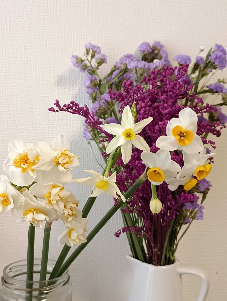 ア-さんさんのカスミソウ,スターチス,水仙の投稿画像