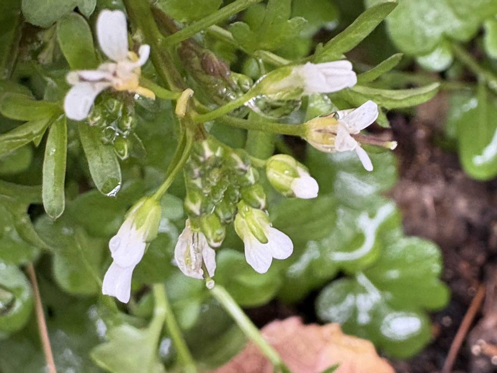 勝手に生えてくるので適度に付き合う間柄、タネツケバナは在来種だが、こちらはヨーロッパからの帰化植物