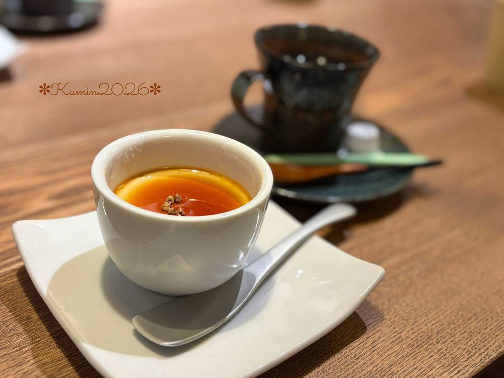 プリンの器がオフホワイトでコーヒーカップ&ソーサーがブラック系🖤なのもスゴイ⤴️⤴️