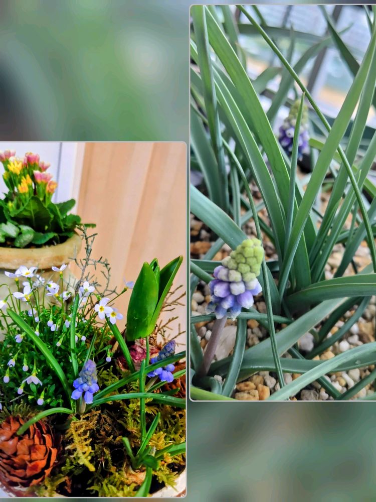 ➃外のいろいろ球根鉢のムスカリと部屋の寄植えのムスカリ🍇