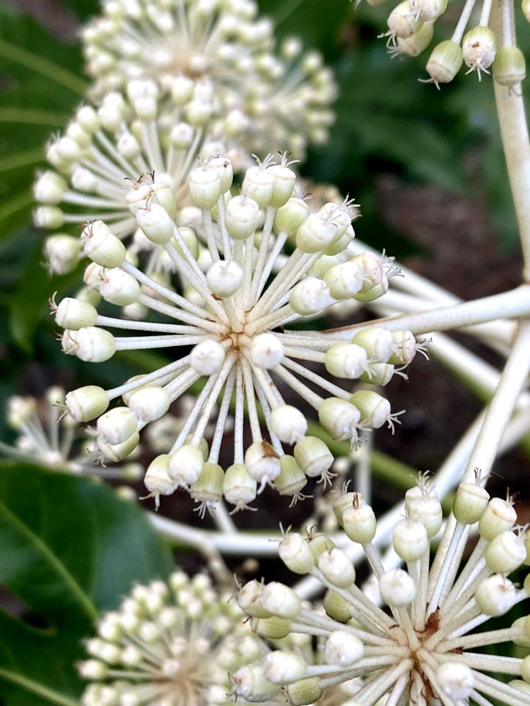 めしべがオバQの頭の毛みた〜い👀3本より多いけど💦 ヤツデでした😅