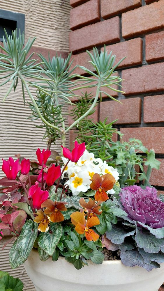 2️⃣ 白雪姫の後がまにプリムラジュリアンを入れた本日の寄せ植えの状態です😃