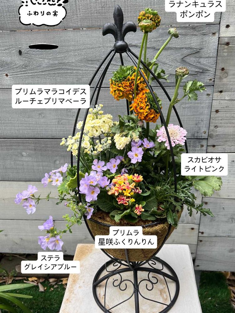 今月はアイアンコクーンバスケットにラナンキュラスポンポンがメイン花材です♪