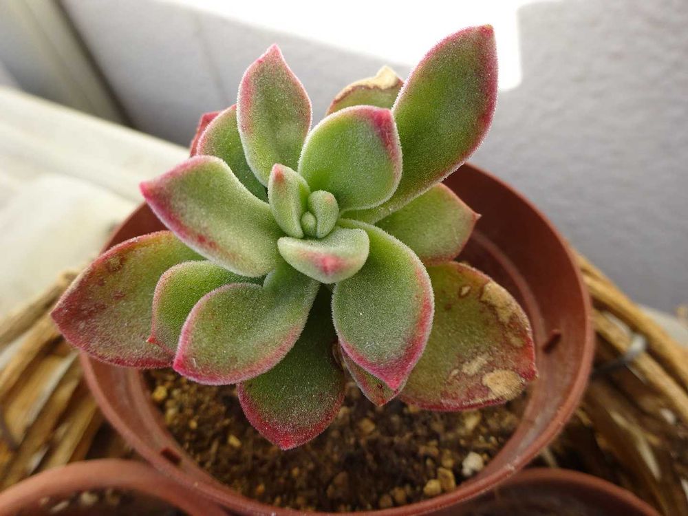 葉っぱが緑色と縁に濃い赤色が付く多肉植物