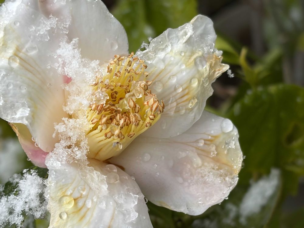 花を見ると雪を被って耐えてるようです。𓏸𓈒 𓂃🌼.*