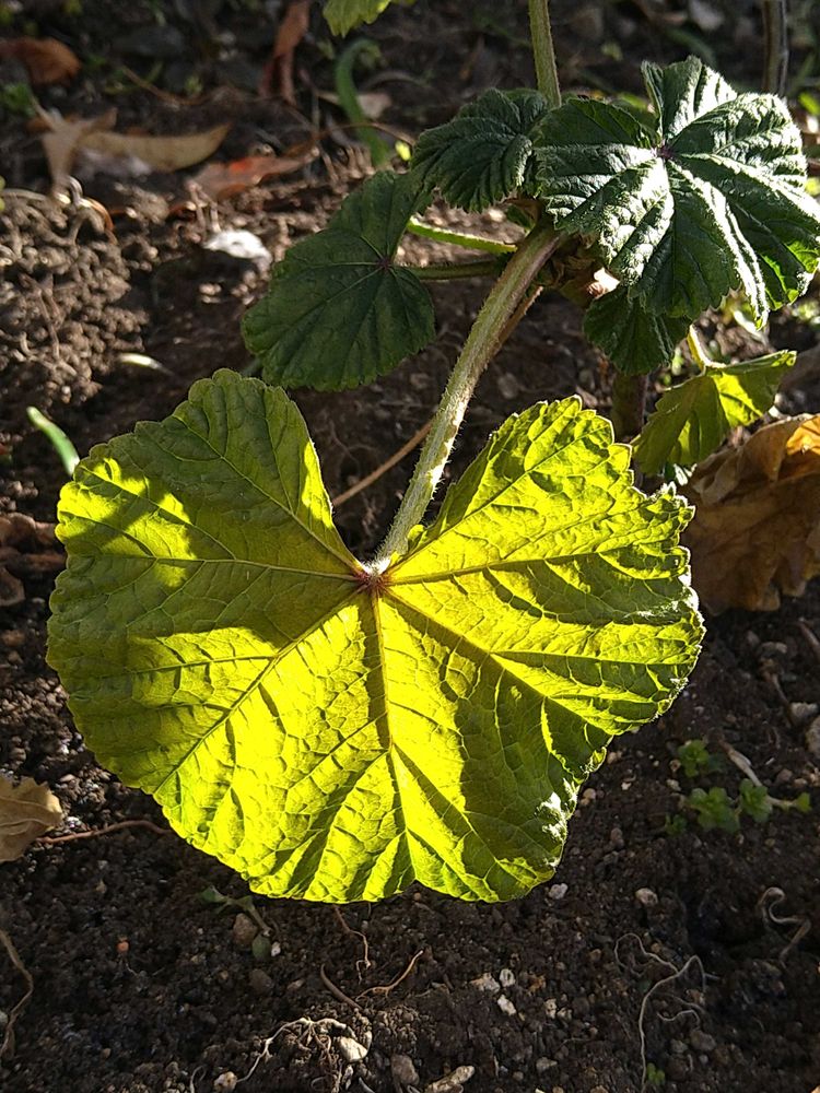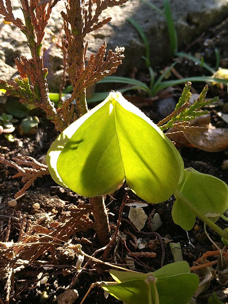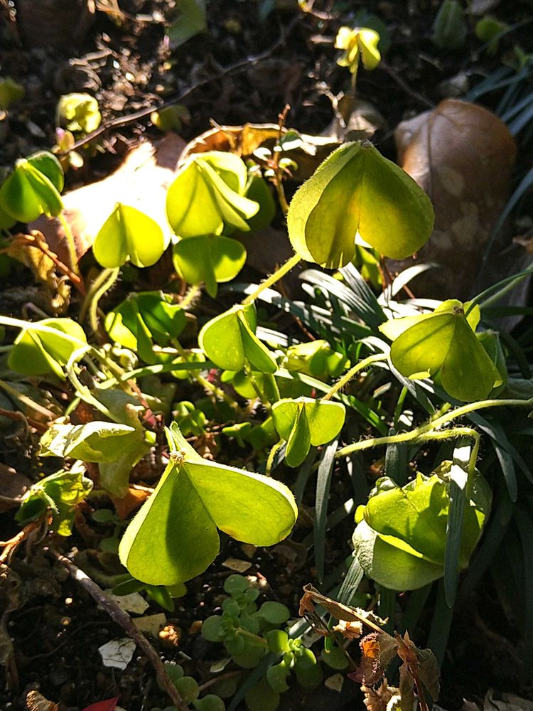 ゼニアオイ、カタバミの葉、陽の光浴びて、透き通ってるようですね☺️綺麗🤩