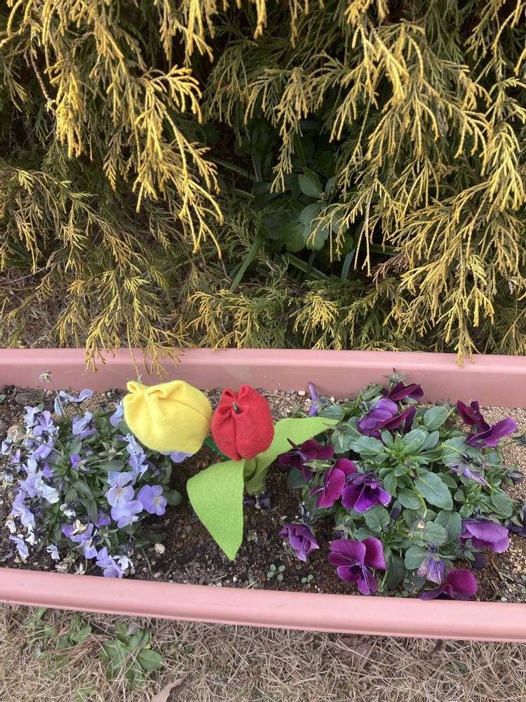 フェルトのチューリップなら寒さも気にしないでオーケイやね🤭🌷