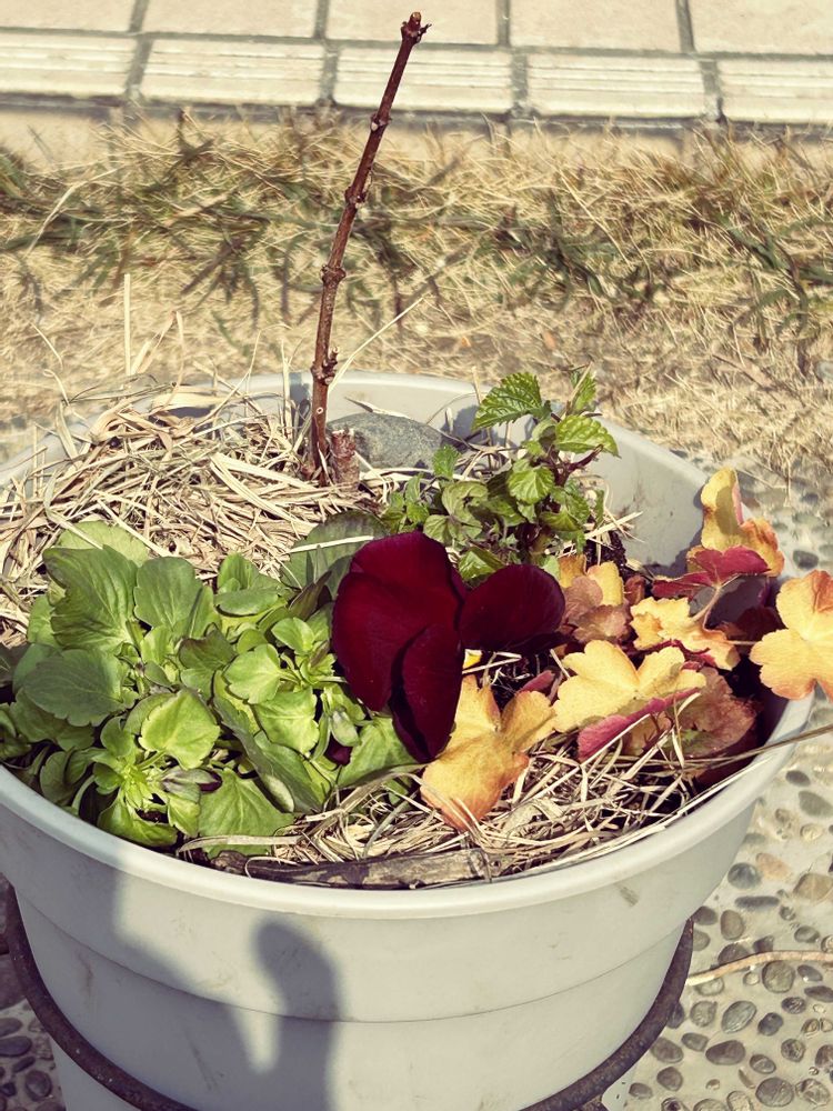 2️⃣夏の生き残り鉢のあいたスペースにパンジー赤色🟥を入れ込みました。