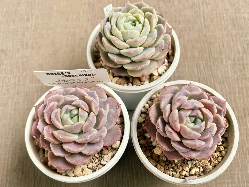 4月頭にダイソーで見かけて多肉デビュー。 ピンクルビー・ヤマトニシキのメジャー多肉メイン