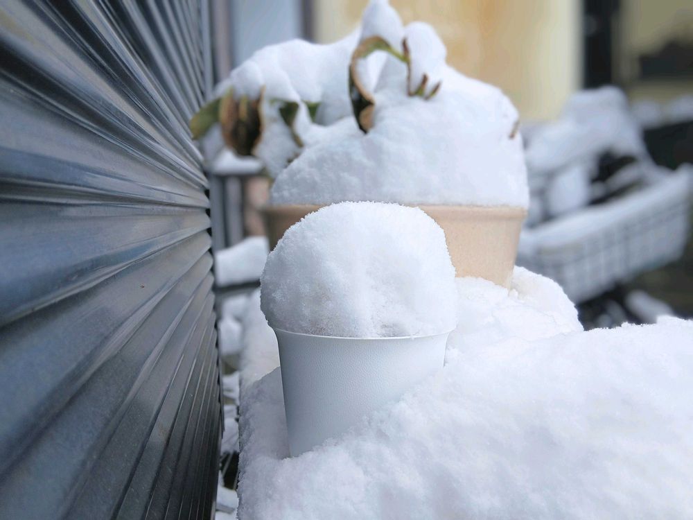 えぇ感じの形に積もった鉢植え🍧