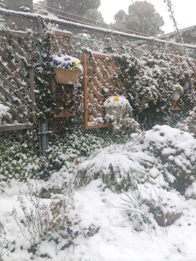 節分の日に投稿したコミュニティ花壇のパンジーやビオラもすっかり雪に覆われて寒そう!🥶