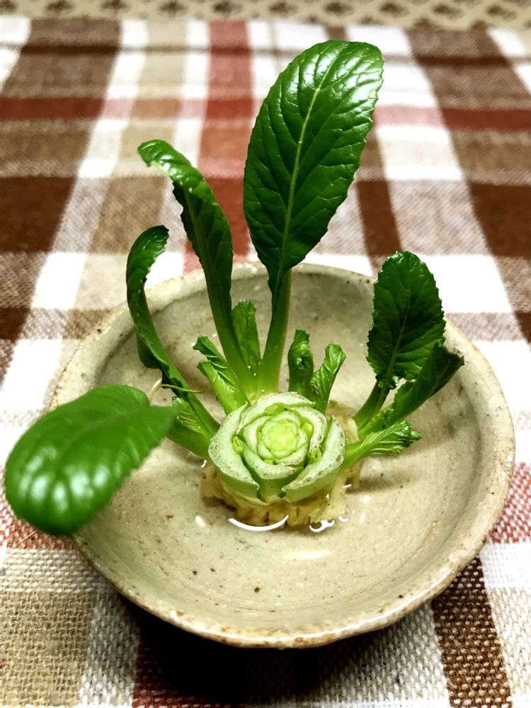 小葱や大根の葉を水につけたことはありましたが、小松菜🥬さんもこのように葉が生えてくれるなんてすごい😍😍👍ですねー❣️
