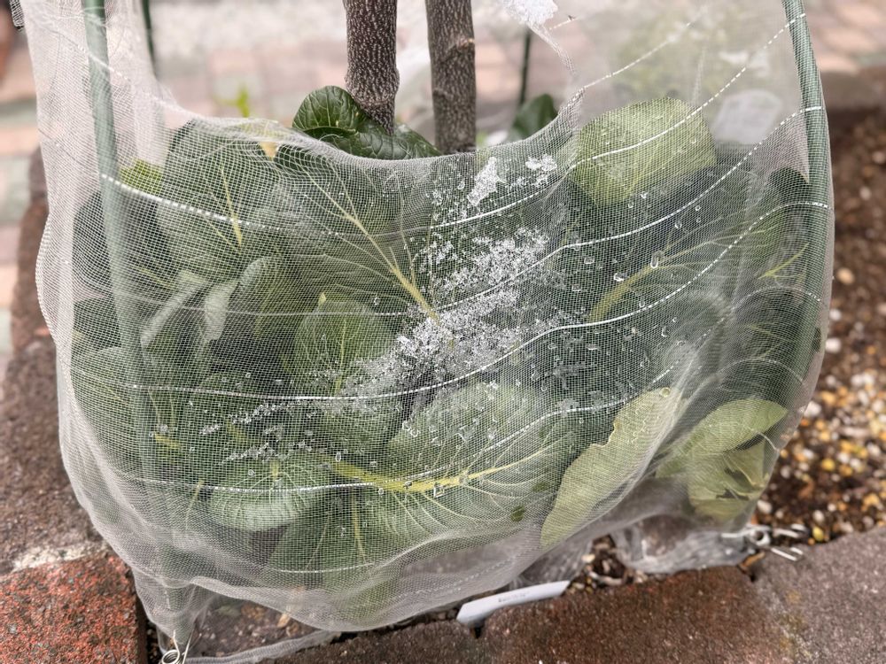 今日は雪がちらちらと降ってネットのうえに少し積もってます❄️