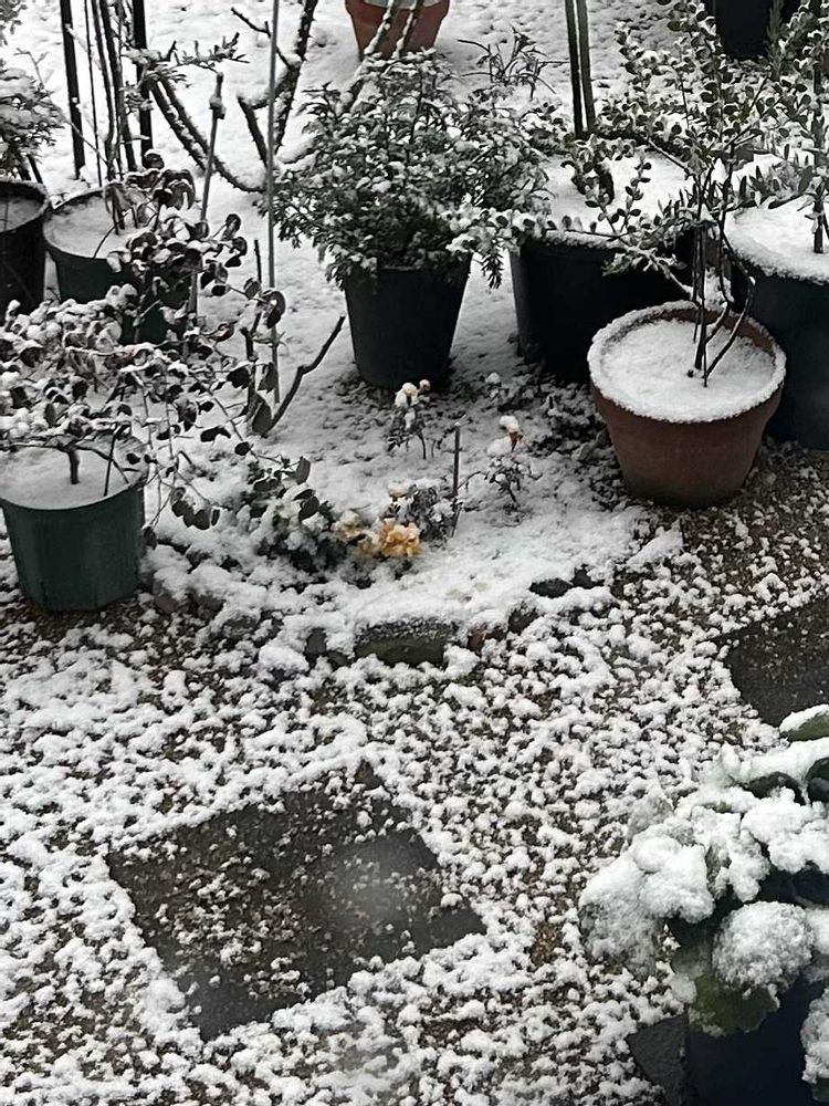 ①ミルフルもマリーゴールドも久しぶりの積雪で雪の下です