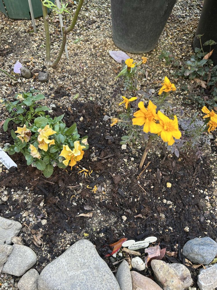 ②雪が溶けた後のミルフルと挿し木のマリーゴールド