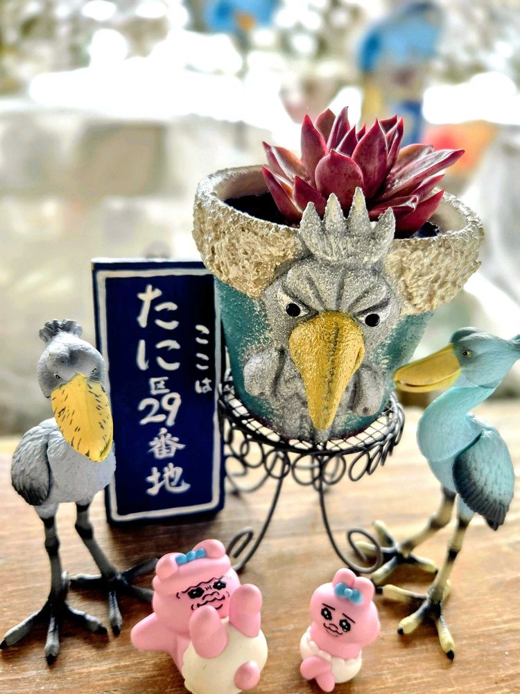 ※fukumomoさんのワッショイプロジェクトでお迎えできた木工ハシビロコウチャン鉢可愛い💠です✨