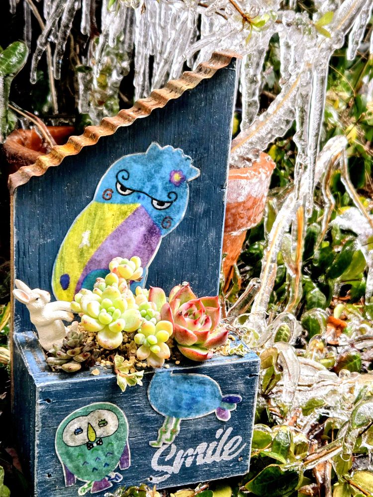 ※ハシビロコウチャン木工鉢の上にツララが輝いて(☆∀☆)💡思わず👀📷✨
