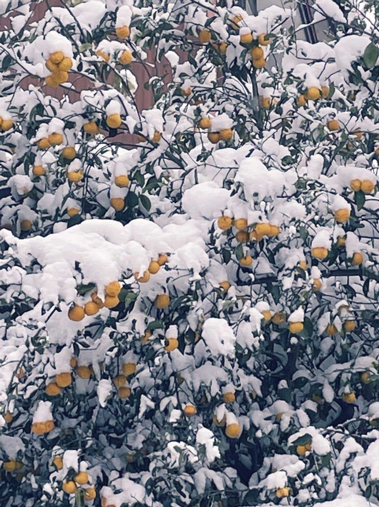 朝からの雪❄️で柚の木に雪❄️が沢山積もってました✨