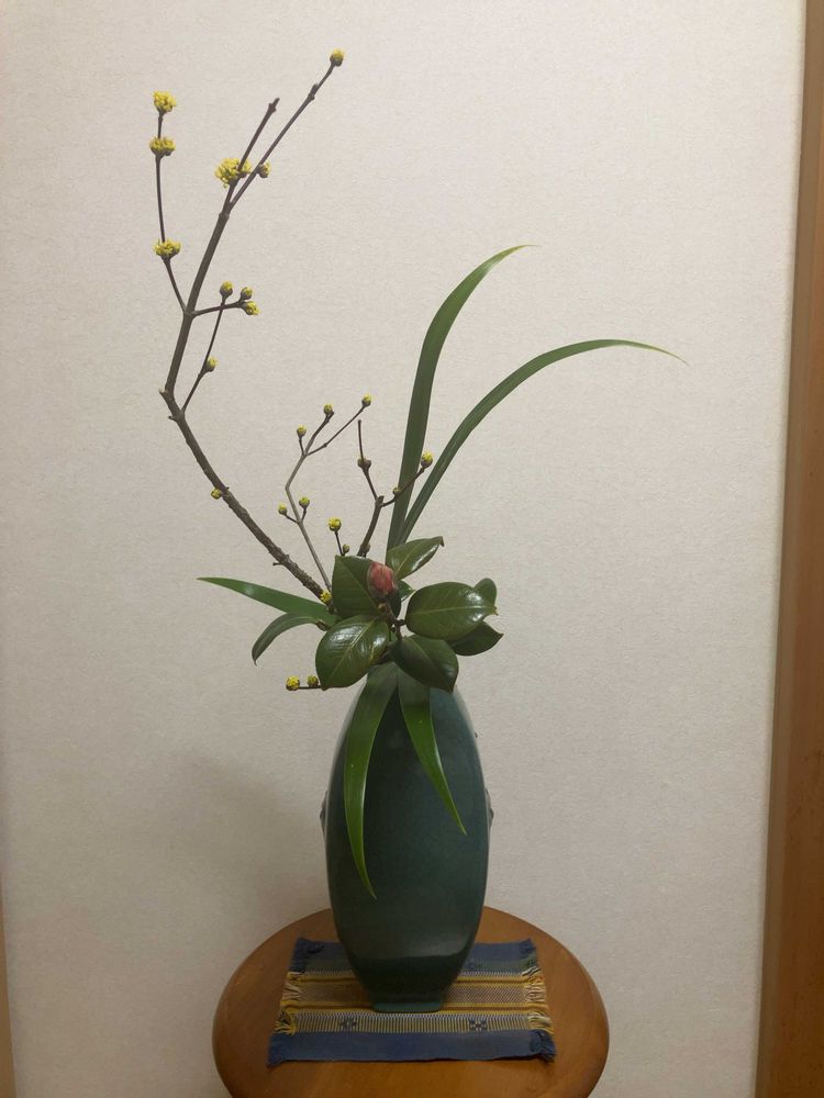 花材:サンシュユ・椿・シャガ