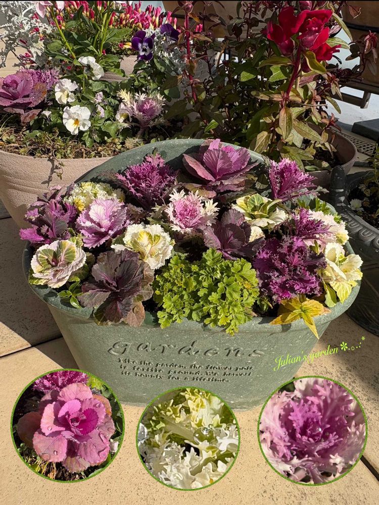 真ん中のは葉牡丹ではなくて 暑い夏も乗り越えたマトリカリアの葉っぱです💚