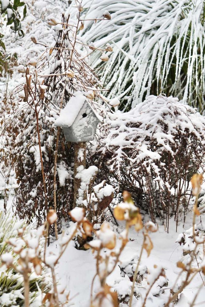 小さな庭の枯野が華やぎ嬉しくて