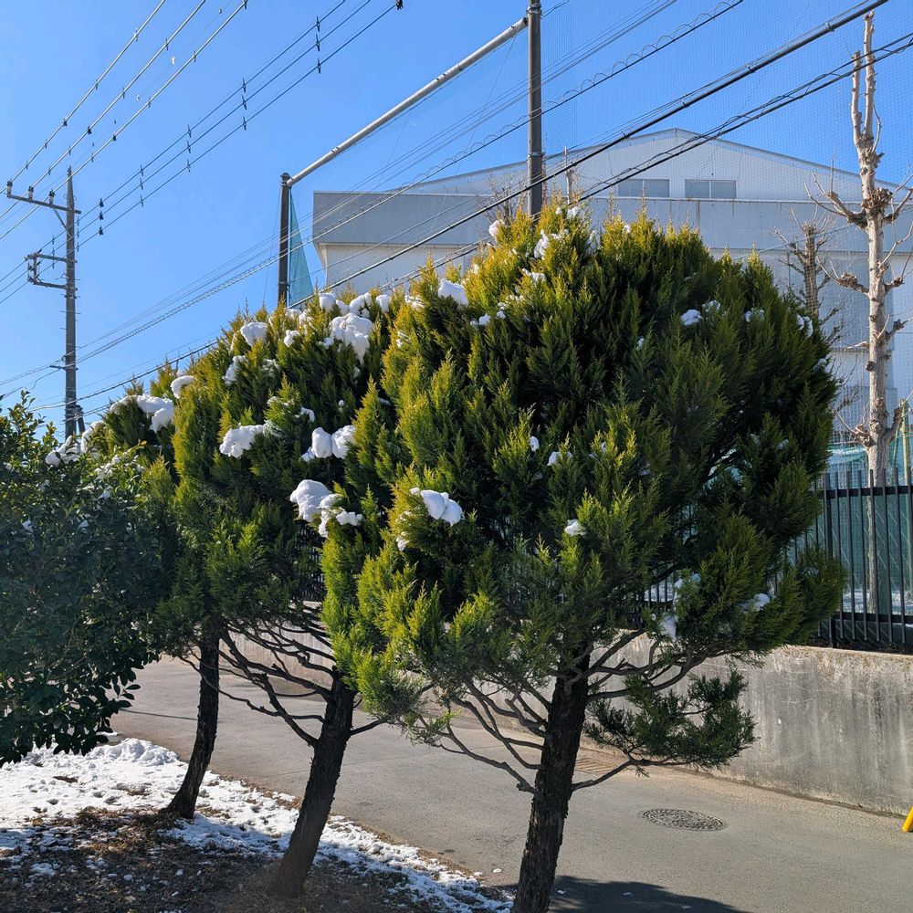 2枚目:コニファーのゴールドクレストです。少し雪が残っています。