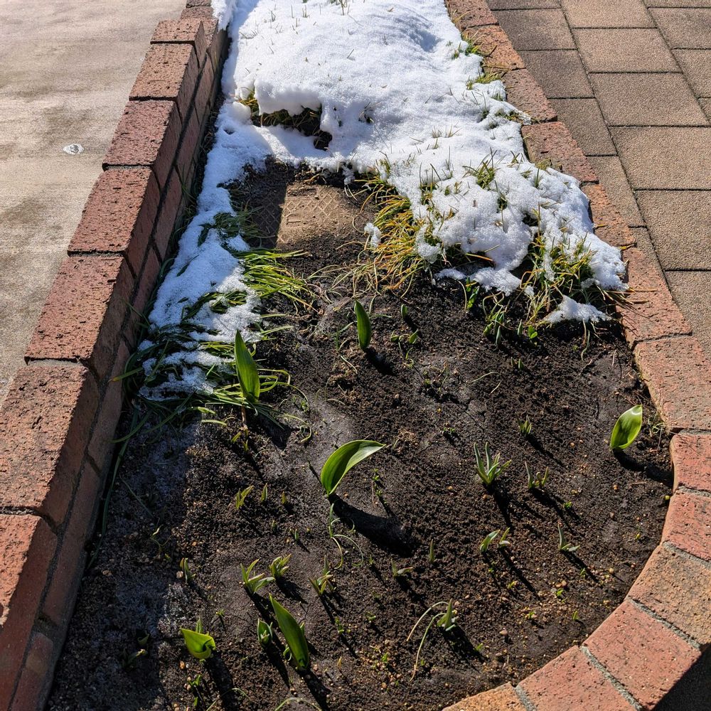 4枚目:花壇の様子です。チューリップ🌷などの芽が見えるようになりました。