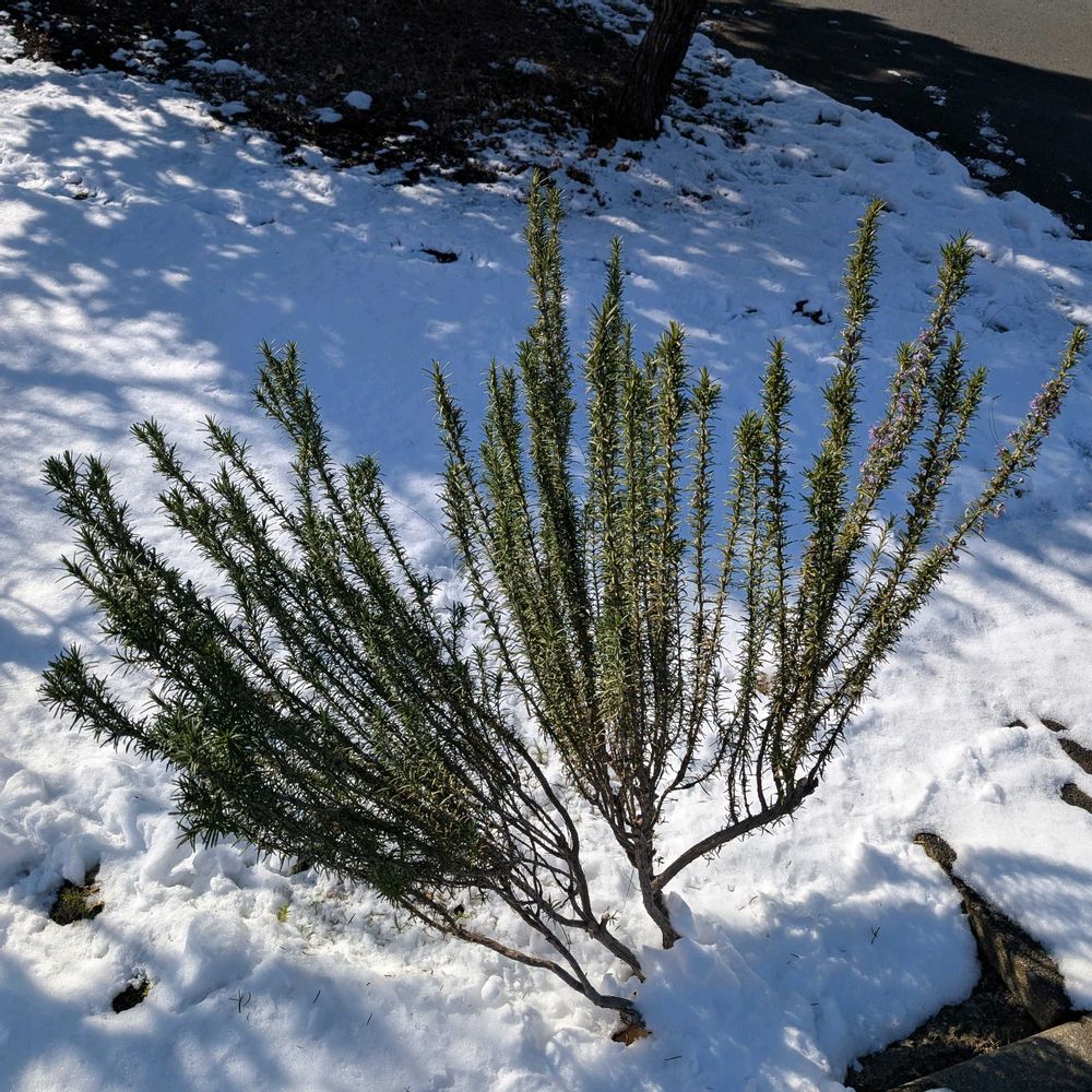 5枚目:直立性のローズマリーです。雪を落としてあげました。以前と同様の姿に戻りました。