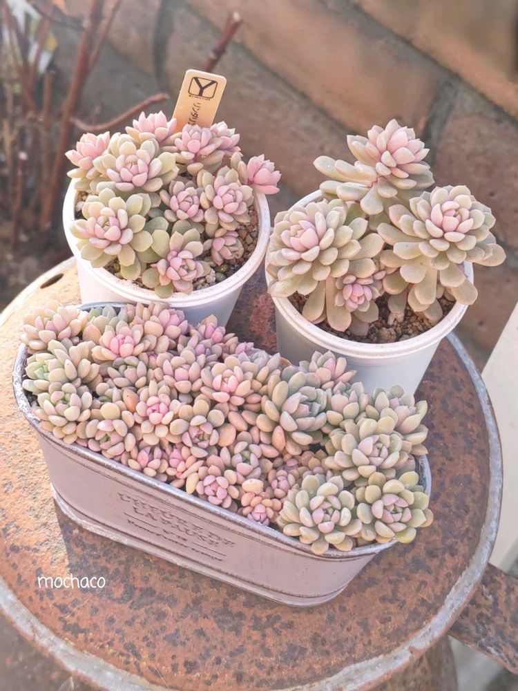 4月頭にダイソーで見かけて多肉デビュー。 ピンクルビー・ヤマトニシキのメジャー多肉メイン