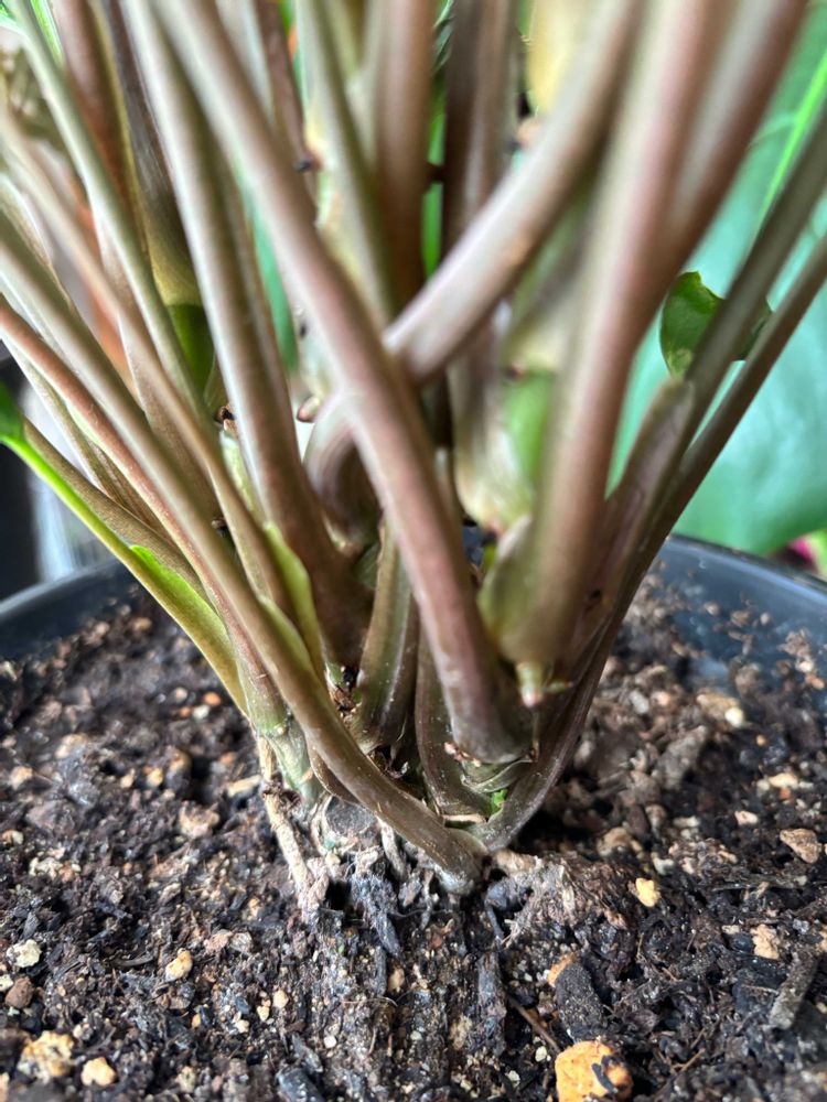 うちのデザートローズ、下葉ジュレ気味や、枯れたりもして何枚かもぎもぎしました😂