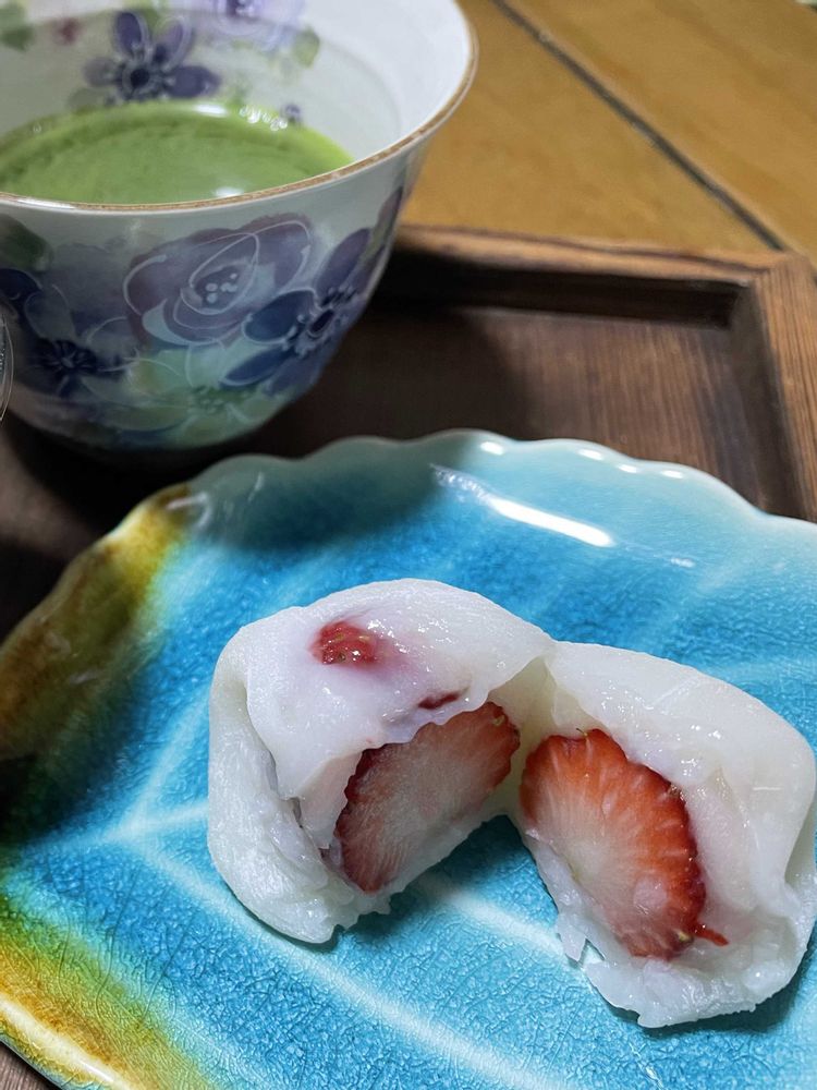 苺大福🍓、濃いお茶でどうぞ〜🍵