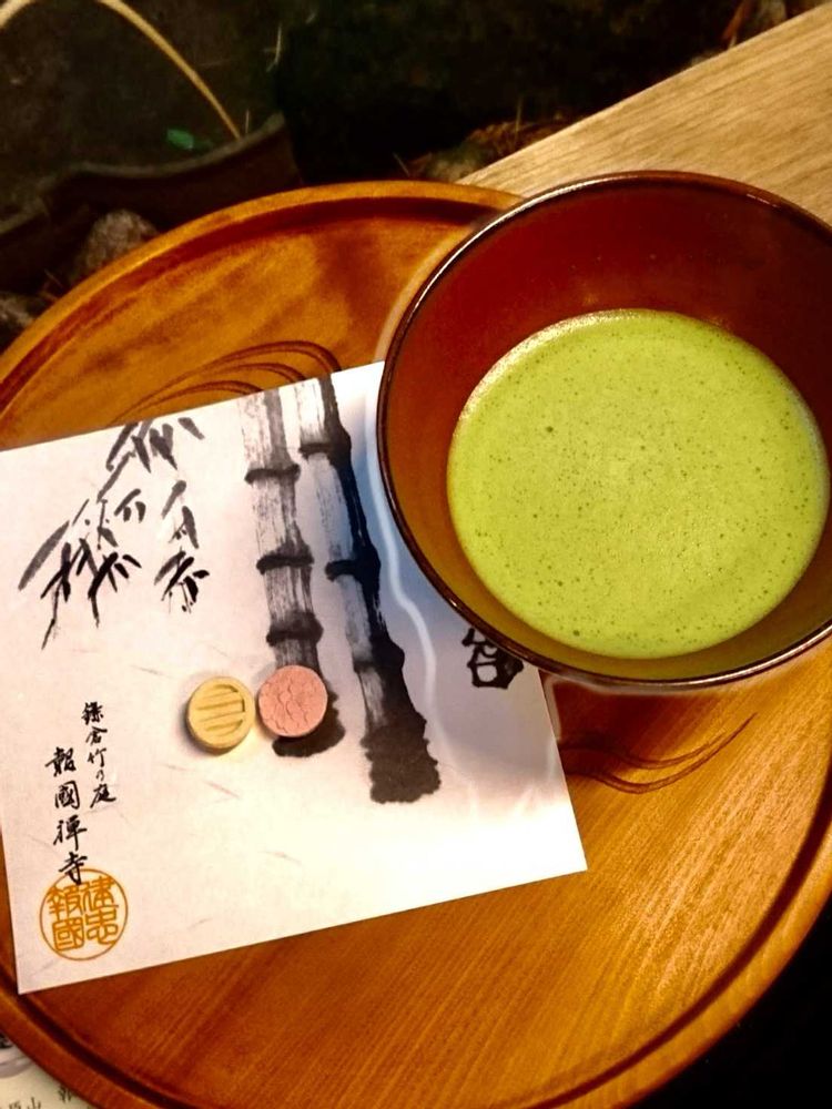 ⑤心洗われる竹の庭で抹茶をいただきました(抹茶券付き拝観券必要)