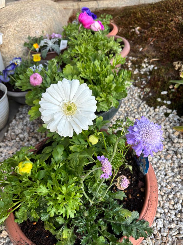 ⑴ アネモネとスカビオサとラナンキュラスの寄せ植え