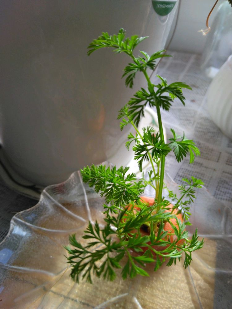 *窓辺の人参のヘタちゃんが元気をくれます💓