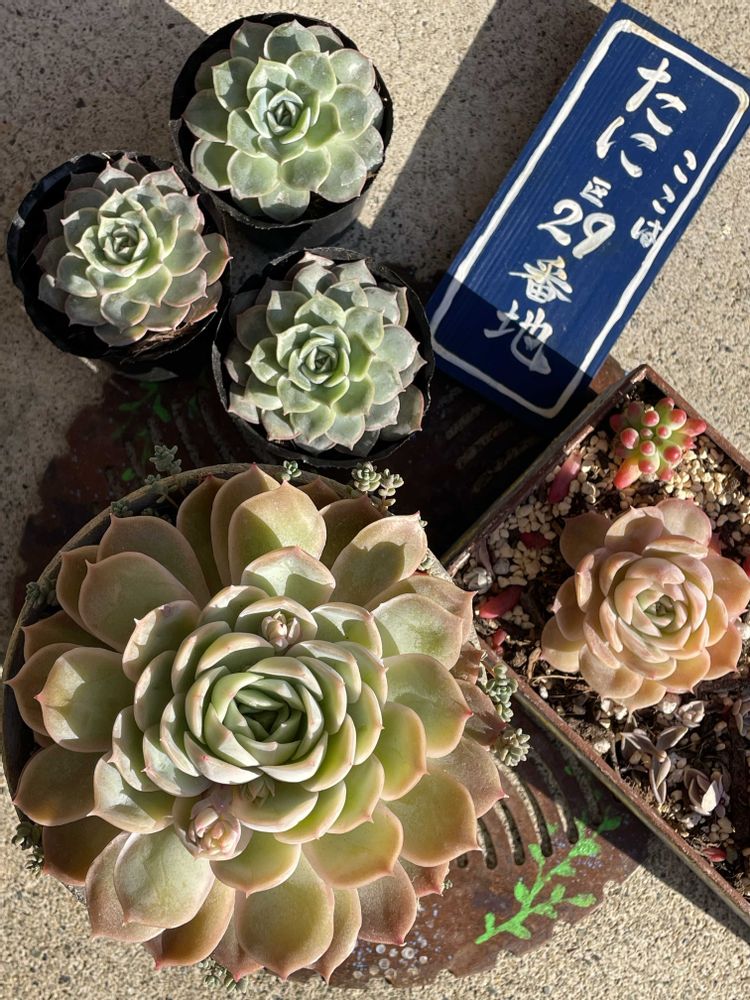 2025年4月にネットでたにたのさんの苗を購入した時におまけでついてきた名無しのエケベリアが面白く育っているので、成長記録を作りました。 この子の名前ご存知でしたら、ぜひ教えてください🙏