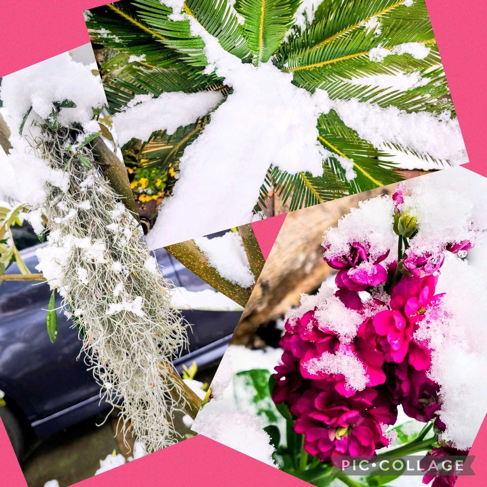 昨日の投稿に続き日曜日の雪❄の中で頑張った我が家の植物たちの姿です🥳
