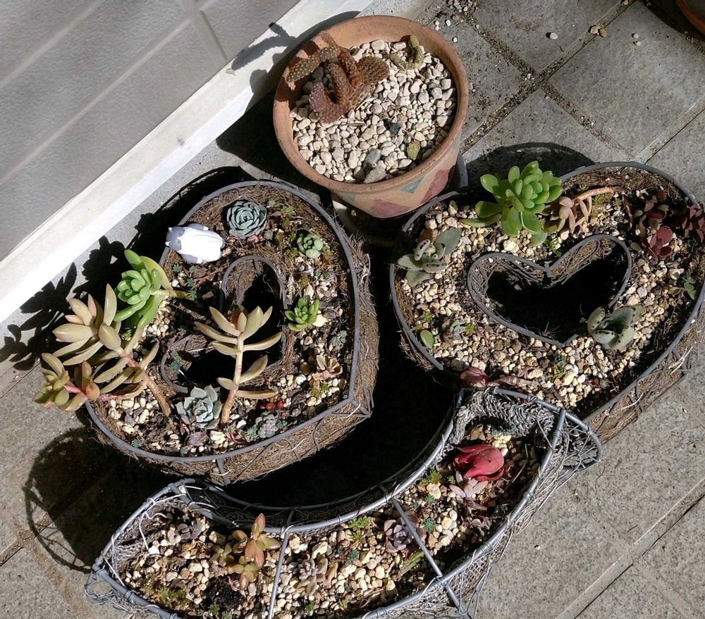 多肉の防寒の状況を確認するために日光浴を兼ねて不織布を外してみました