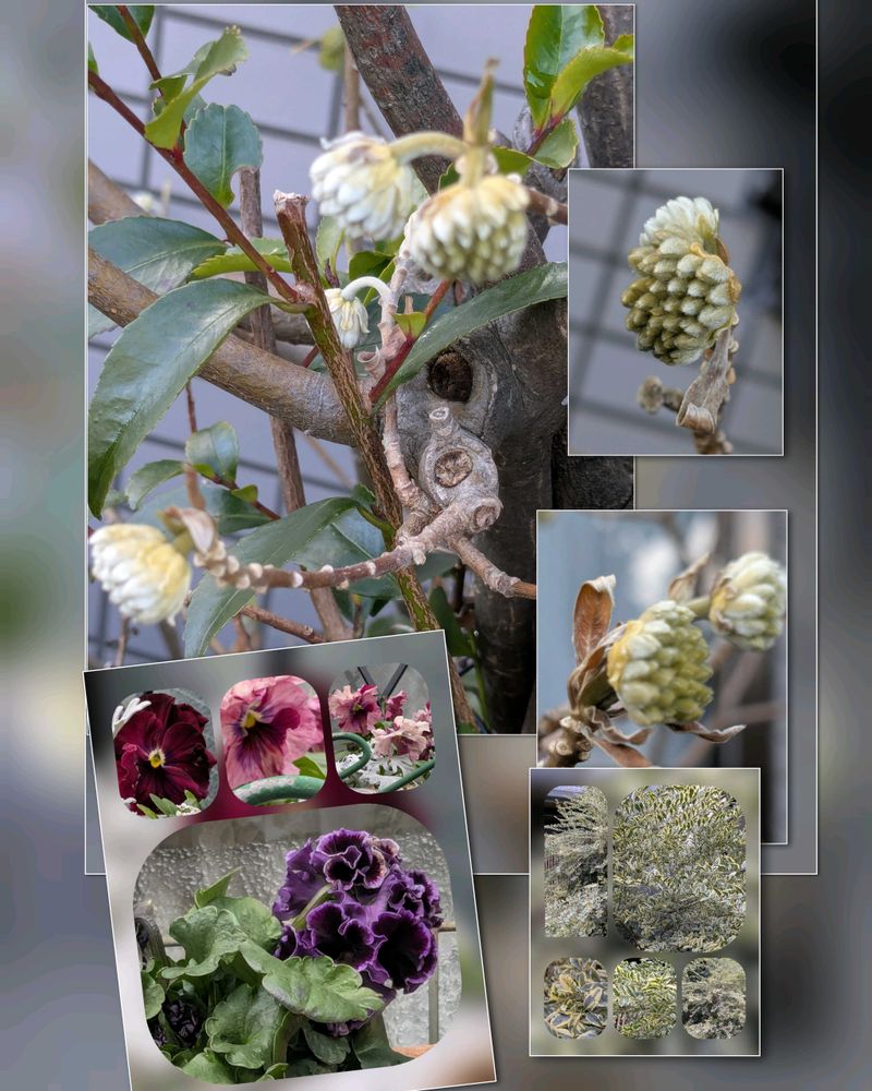 昨年春にご近所さんから頂いた桜の鉢植え。キレイに設えてあるステキな鉢です 初めての冬越しにドキドキ。 (サトザクラと聞いていましたが、河津桜のようです🌸)