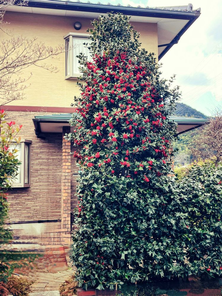 クリスマスホーリー,通り道のお宅の生垣,買い物に行く途中での投稿画像