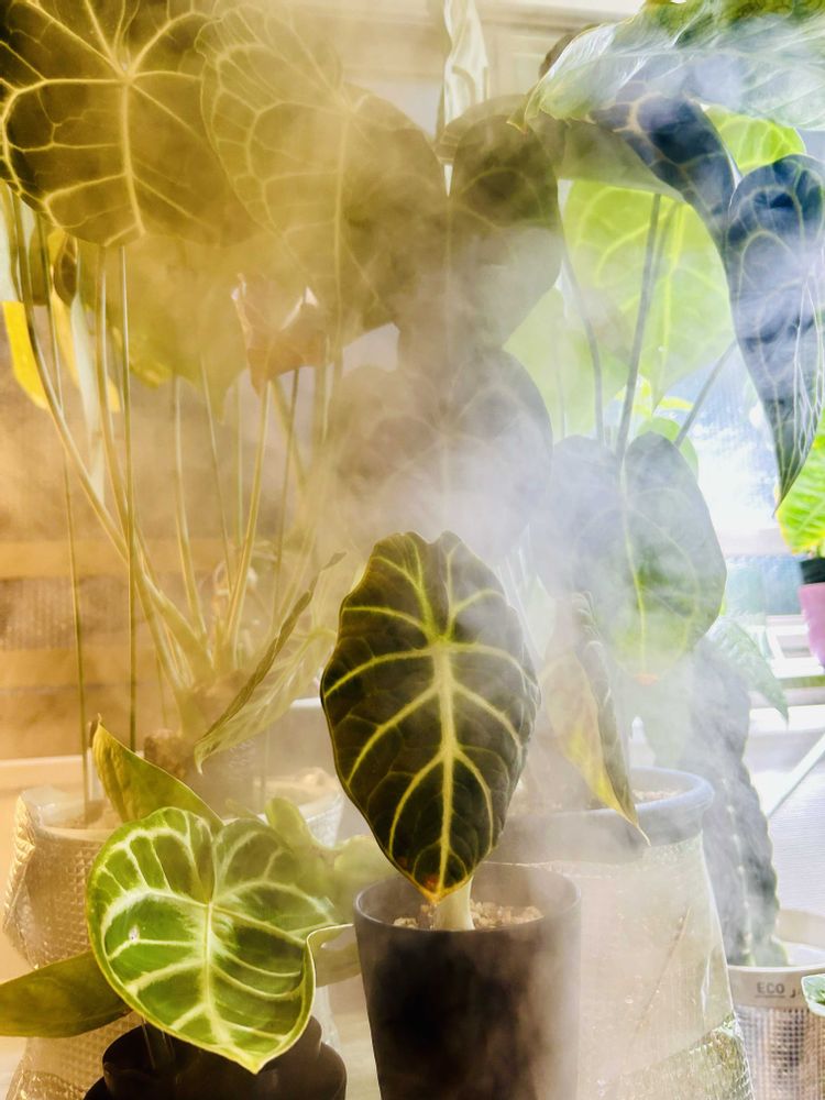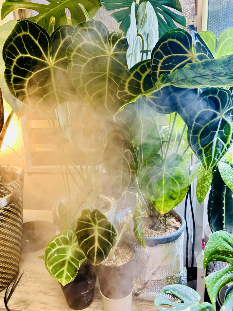 湿気が大好きなアンスリウムを1箇所にまとめました😊加湿器で気持ち良さそうです〜😊