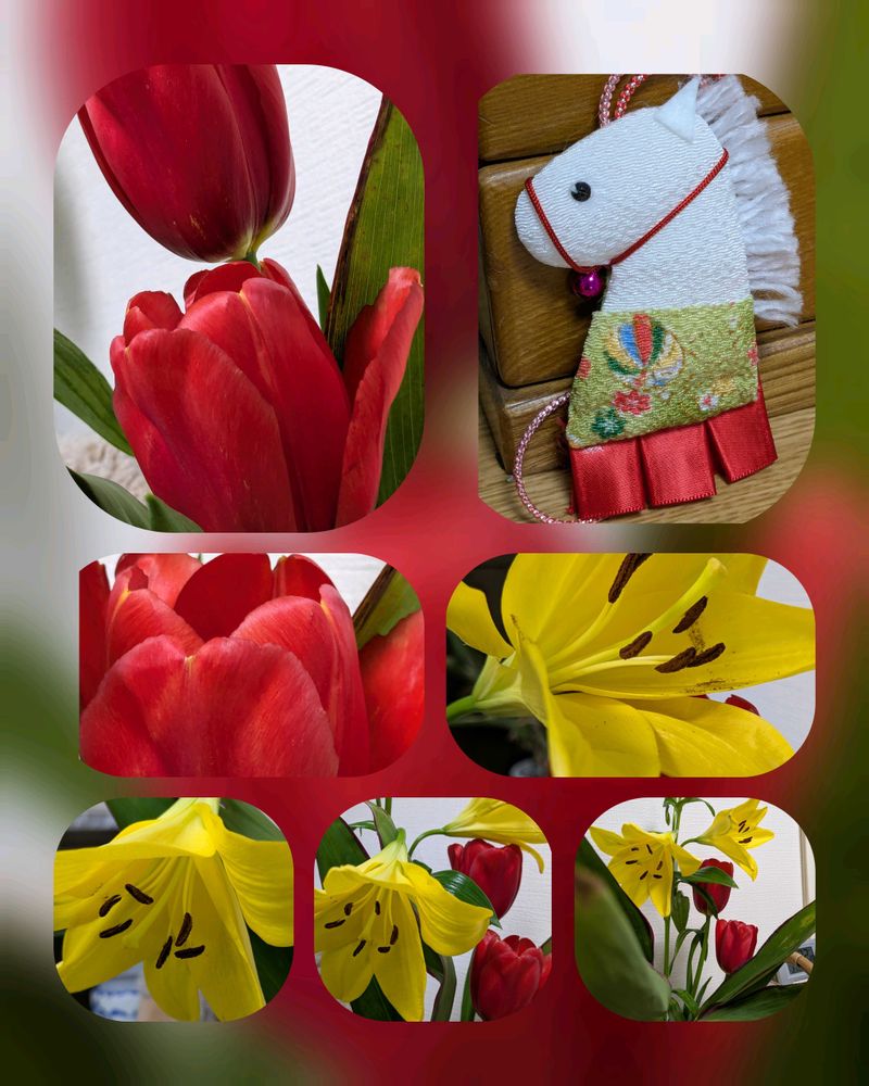 こなゆきさんこんにちは🌞可愛いお馬さんですね、お花🌼🌸ハチュウリップ、スカシ百合、ですかねー♪♪